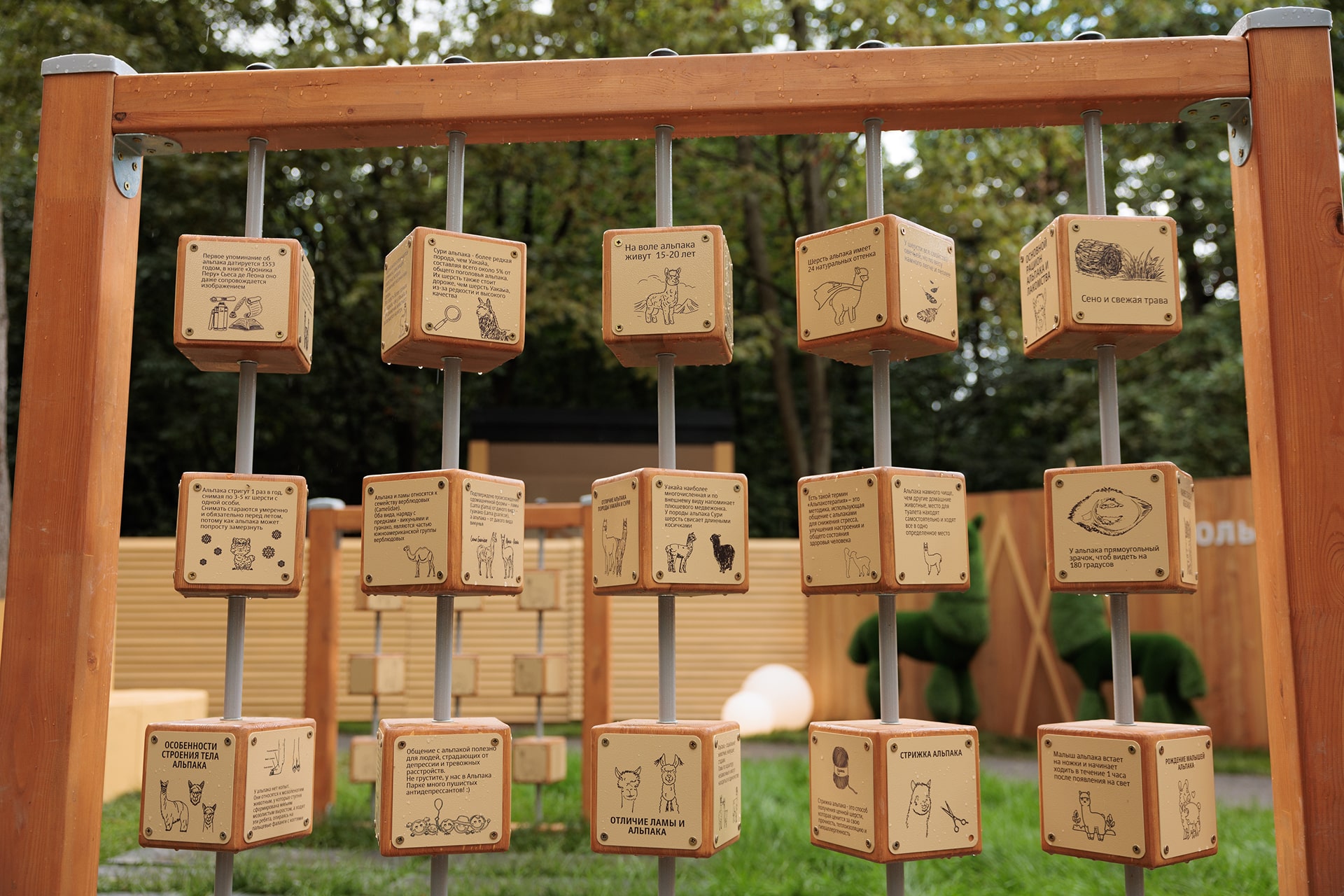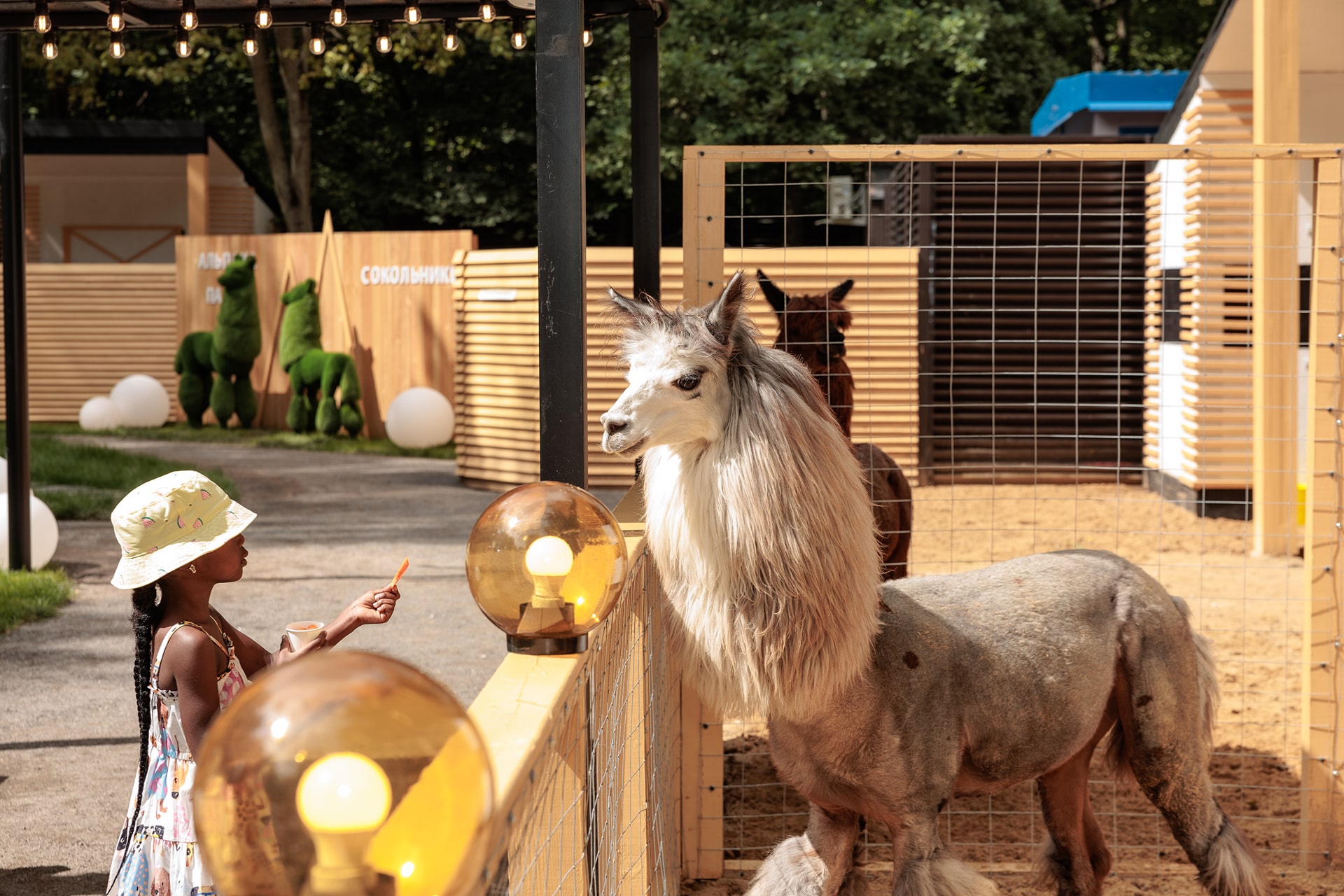 Его черный окрас приковывает к себе внимание. С удовольствием ходит на прогулки с гостями и принимает угощения. По характеру Блэкки дружелюбный, милый и обаятельный альпака.
